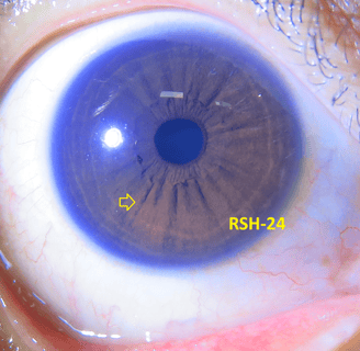 Suatu hari, saya menganalisa iris mata seorang perempuan muda. Di mata kanannya, saya menemukan pigmen berwarna oranye.